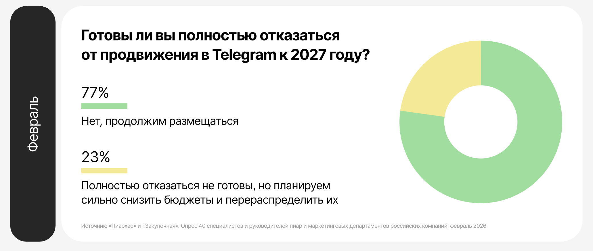 Исследование показывает, что 77% опрошенных компаний не готовы полностью отказаться от продвижения в Telegram.