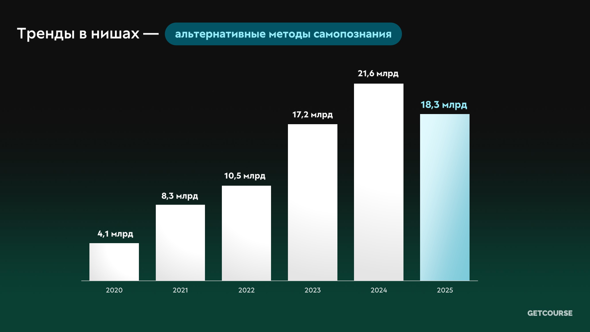 «Мы фиксируем снижение интереса к программам, связанным с эзотерикой, астрологией и другими альтернативными методами самопознания, которые еще несколько лет назад показывали бурный рост. Оборот курсов на эти тематики в 2024 году составил 21,6 млрд рублей, против 18,3 млрд рублей в 2025 году», — сказал Максим Василевич, директор по маркетингу GetCourse.